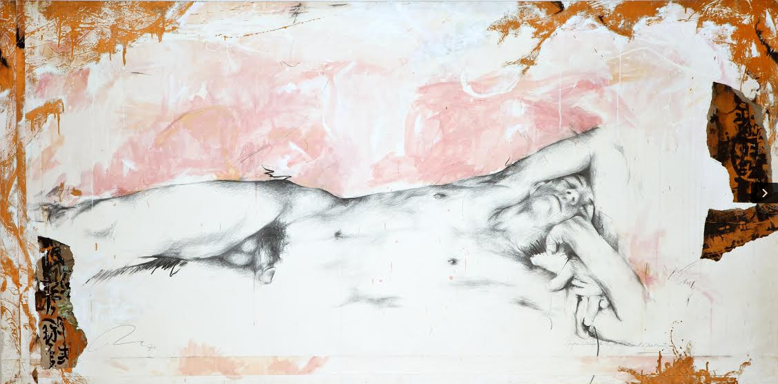 An Expose of the Nude Figure in Oversize Execution of Combination Drawing, Painting and Figure-Focused Design